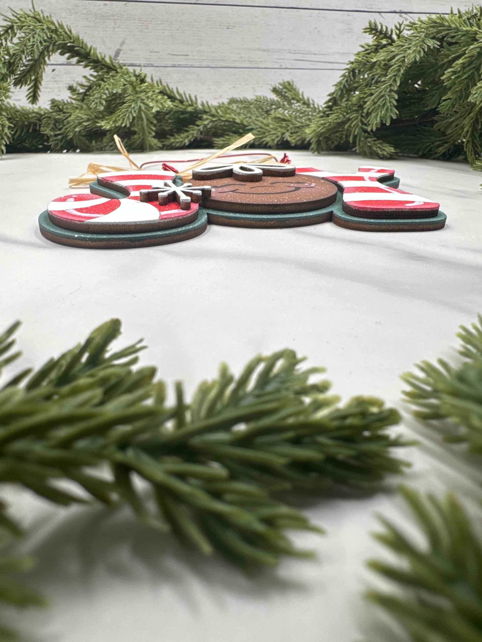 Gingerbread Joy Ornament – Handmade Wood Christmas Ornament, Candy Cane Holiday Décor, Rustic Farmhouse Ornament