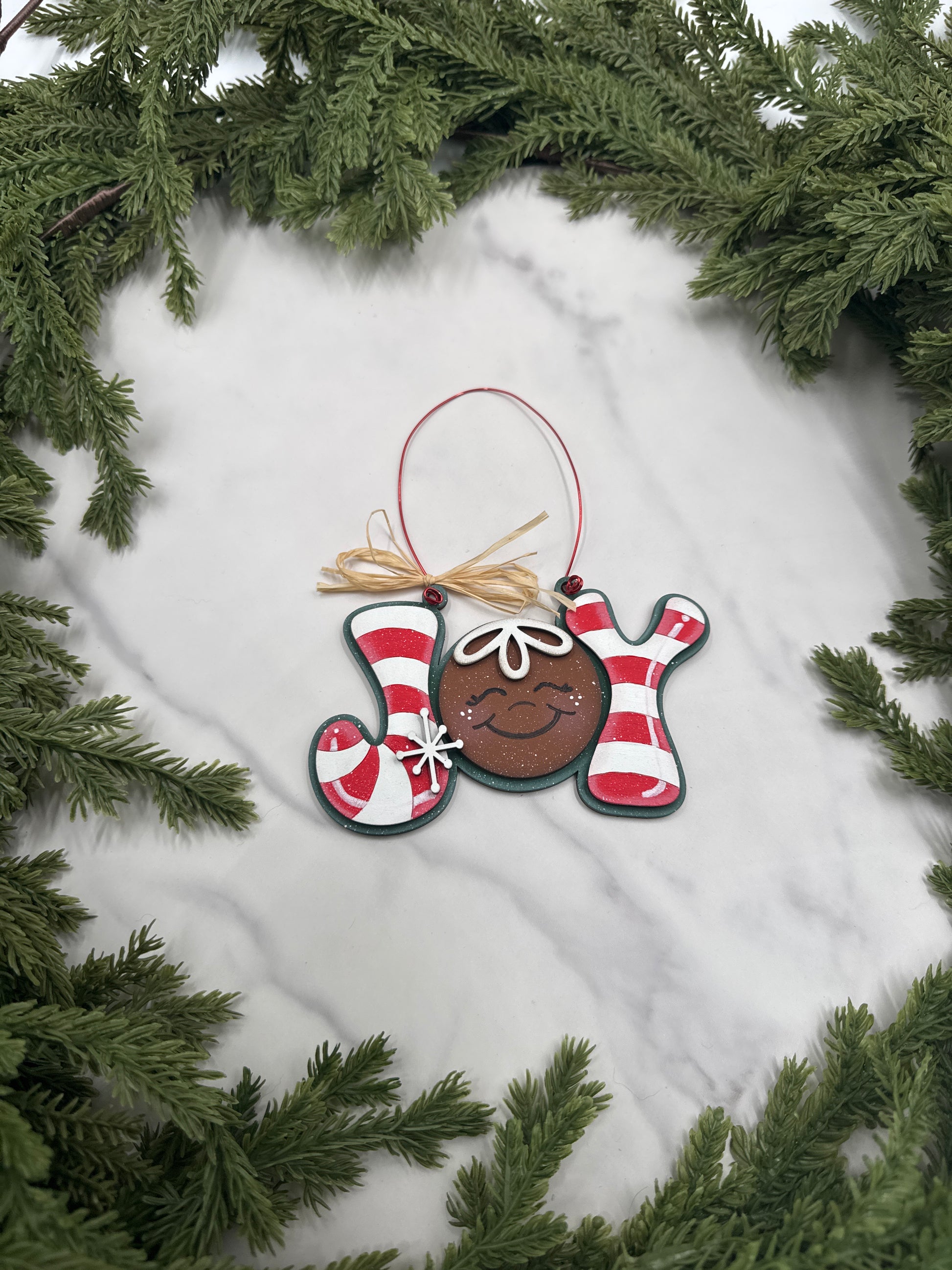 Design: Candy cane JOY letters with gingerbread centerpiece